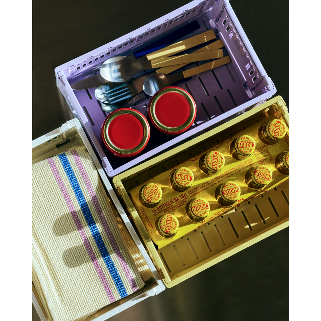 HAY COLOUR CRATEは、穴あきデザインが特徴のカラフルな収納ボックスです。