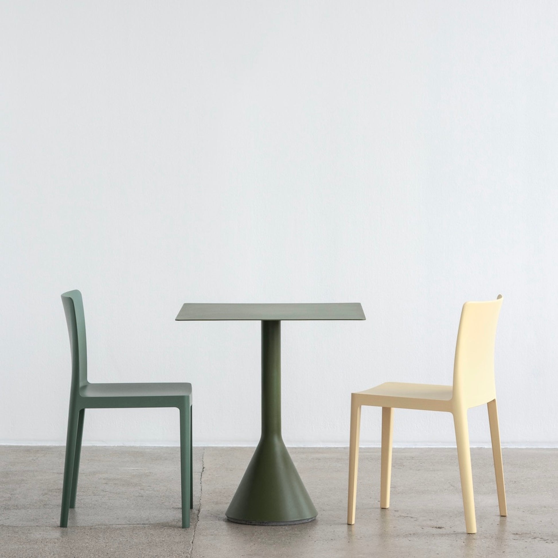 シリーズの特徴でもあるエレガントな印象を保ちつつ、頑丈なコンクリートの土台と超薄型のスチール製テーブルトップを組み合わせたグラフィックなデザインは、高い強度、コンパクトさ、そして安定感を備えています。